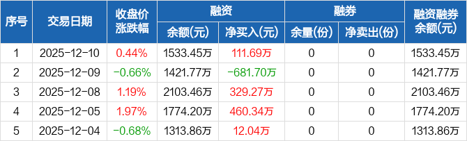 中证2000ETF:融资净买入111.69万元,融资余额1533.45万元(12-10)