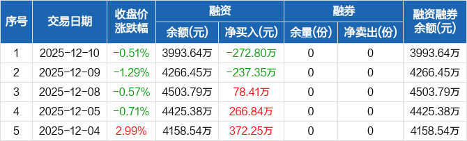 日经ETF:融资净偿还272.8万元,融资余额3993.64万元(12-10)