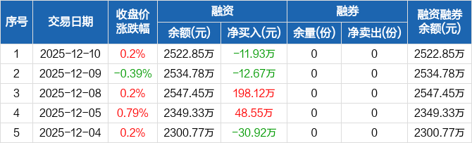 生物科技ETF:融资净偿还11.93万元,融资余额2522.85万元(12-10)