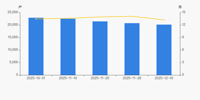 2025年10月31日至今,公司股东户数显著下降,区间跌幅为12.03%。2025年10月31日至2025年12月10日区间股价下降1.71%。