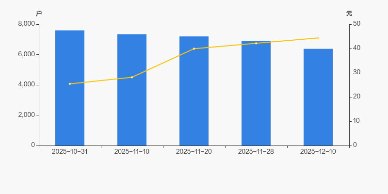 自2025年10月31日以来,公司股东户数连续4期下降,截至目前减幅为16.06%。2025年10月31日至2025年12月10日区间股价上涨74.54%。