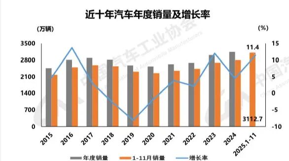 12月11日,中国汽车工业协会(简称“中汽协”)召开沟通会,发布了最新数据。2025年11月,中国汽车月度产量首次超过350万辆,创历史新高。今年前11个月,中国汽车产销量均超过3100万辆,同比增长均超过10%。