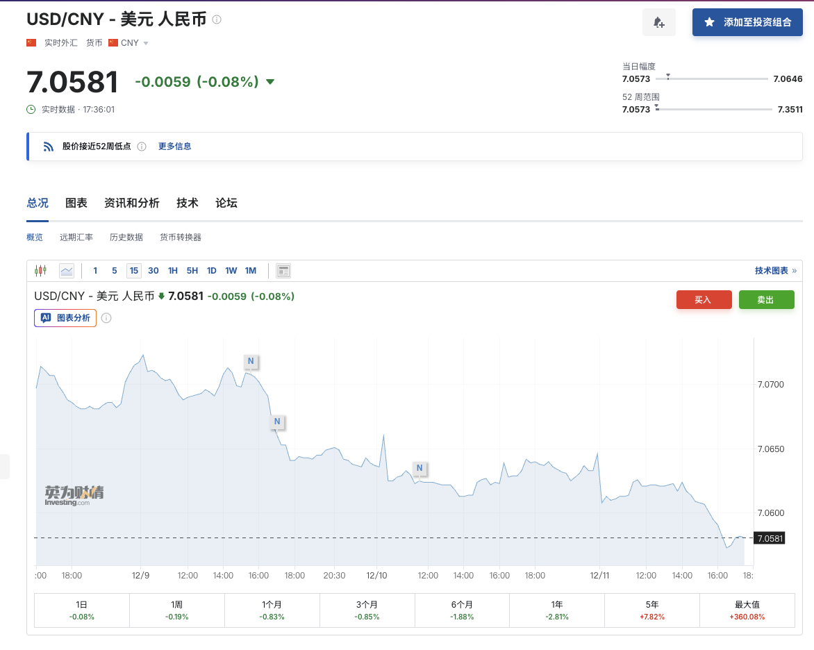 与此同时,人民币持续升值对美元投资收益的影响正在变得更为显著。今年以来人民币对美元累计升值3.24%,最近半年升值1.88%,仅过去一个月内就升值0.83%。截至12月11日,人民币对美元中间价报7.0686,市场普遍看涨人民币后续走势。