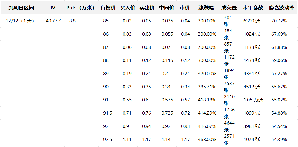 观察本周五行权的PUT单,最高涨幅达7倍。