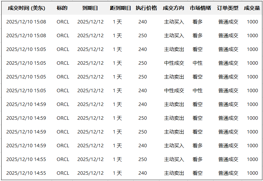 期权智投播报:甲骨文空头获胜!绩前尾盘大户下空单居多