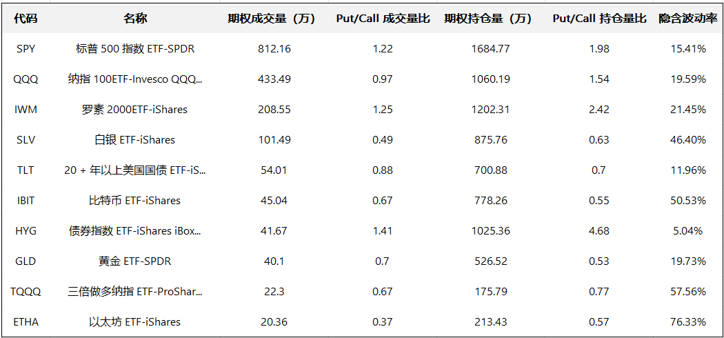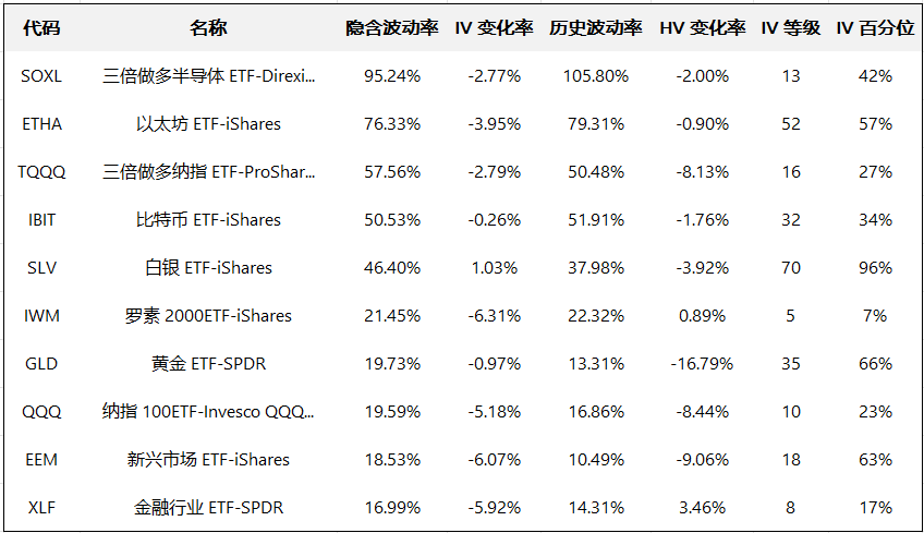 三、美股ETF期权成交榜美股ETF期权成交量排行榜前十