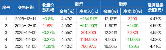 宁波港:融资净偿还284.91万元,融资余额4.47亿元(12-11)