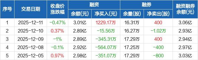 昊华科技融资融券信息显示,2025年12月11日融资净买入1229.17万元;融资余额3.01亿元,较前一日增加4.26%