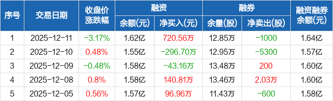 广钢气体:融资净买入720.56万元,融资余额1.62亿元(12-11)