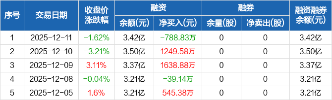 超颖电子:融资净偿还788.83万元,融资余额3.42亿元(12-11)