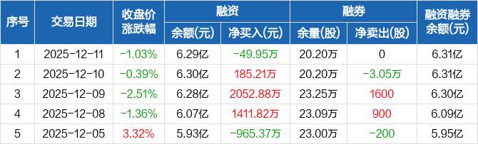 新疆众和:融资净偿还49.95万元,融资余额6.29亿元(12-11)