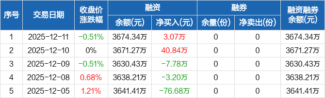 A500ETF嘉实:融资净买入3.07万元,融资余额3674.34万元(12-11)