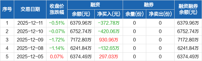 恒生创新药ETF:融资净偿还372.78万元,融资余额6379.96万元(12-11)