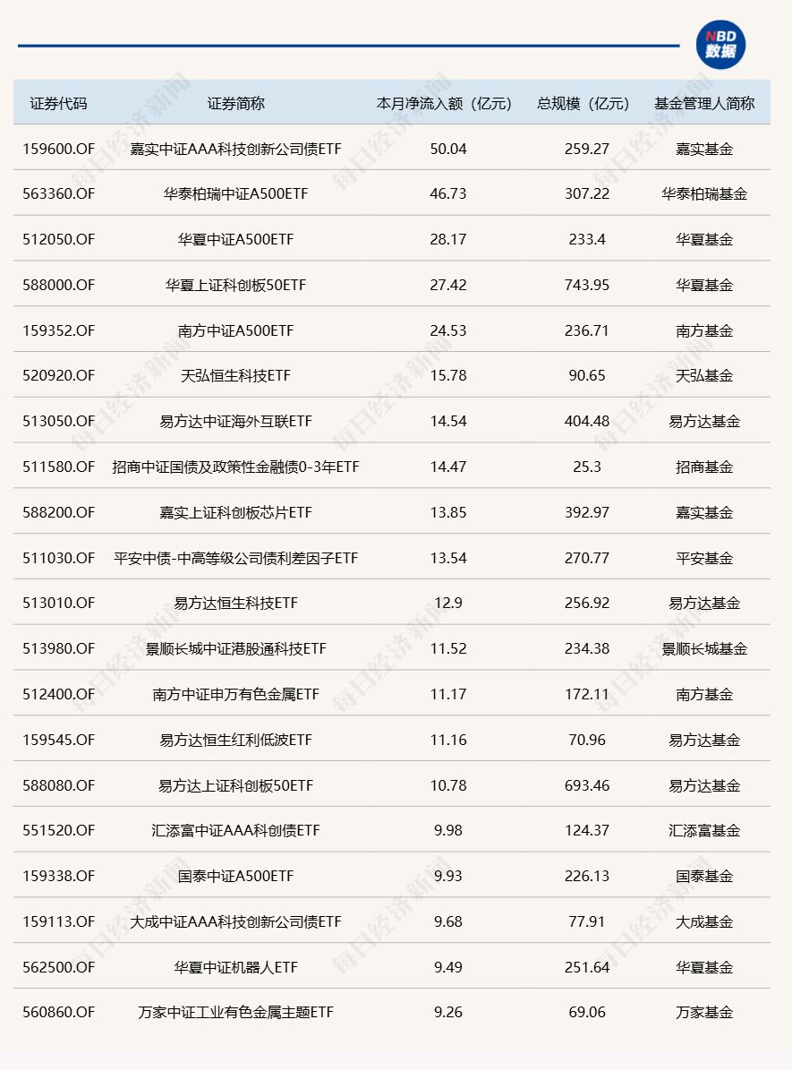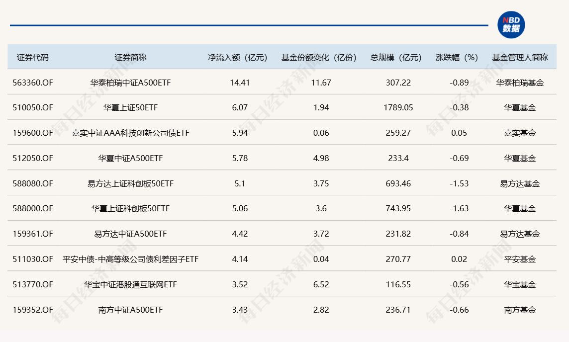 ETF规模速报 | A500ETF华泰柏瑞昨日净流入超14亿元,沪深300ETF净流出逾9亿元