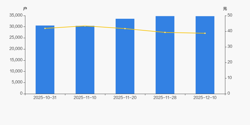 2025年10月31日至今,公司股东户数显著增长,区间涨幅为13.71%。2025年10月31日至2025年12月10日区间股价下降7.43%。