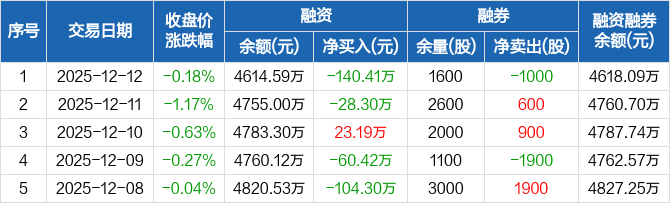 热威股份:融资净偿还140.41万元,融资余额4614.59万元(12-12)