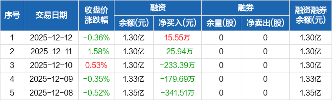 江南水务:融资净买入15.55万元,融资余额1.3亿元(12-12)