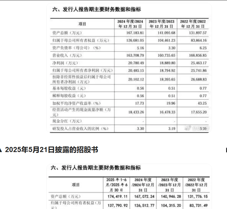 最新版本的招股书显示,2022年至2025年1~6月(下称“报告期”),长裕集团经营业绩呈现显著波动态势,营收与净利润经历了先降后升的调整过程。报告期各期,公司分别实现营收16.69亿元、16.08亿元、16.38亿元和8.97亿元,归母净利润分别为2.63亿元、1.95亿元、2.12亿元和1.13亿元。
