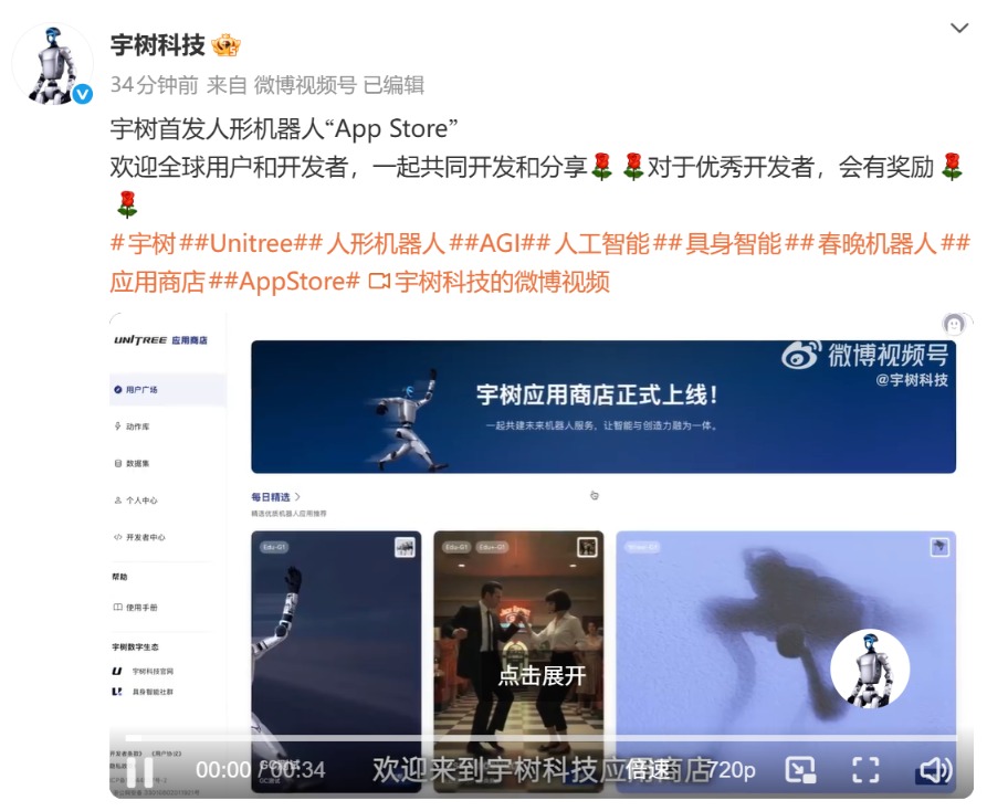 每经AI快讯,12月13日,宇树科技宣布首发人形机器人“App Store”,用户可以将训练好的舞蹈、武术、干活等模型一键上传分享,也可以下载其他开发者开发的动作部署到机器人。
