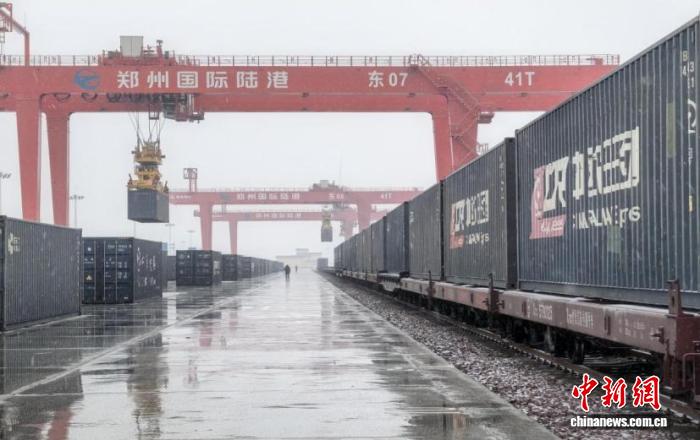 中新网郑州12月13日电 (李海珠)12月12日,位于河南郑州航空港经济综合实验区的郑州国际陆港东站,1列35车郑州-越南调令班列成功首发。