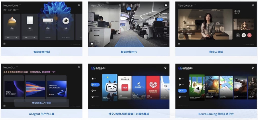 更值得一提的是,基于脑虎自研的插件式脑机接口操作系统XessOs,产品展现出强大的开放性与扩展性——不仅能让患者实现意念操控光标、网页浏览、游戏互动等数字设备,更能无缝连接气囊手套、智能轮椅、智能家居乃至人形机器人等多类物理设备,构建起一个以用户意图为中心的“延伸躯体”生态。