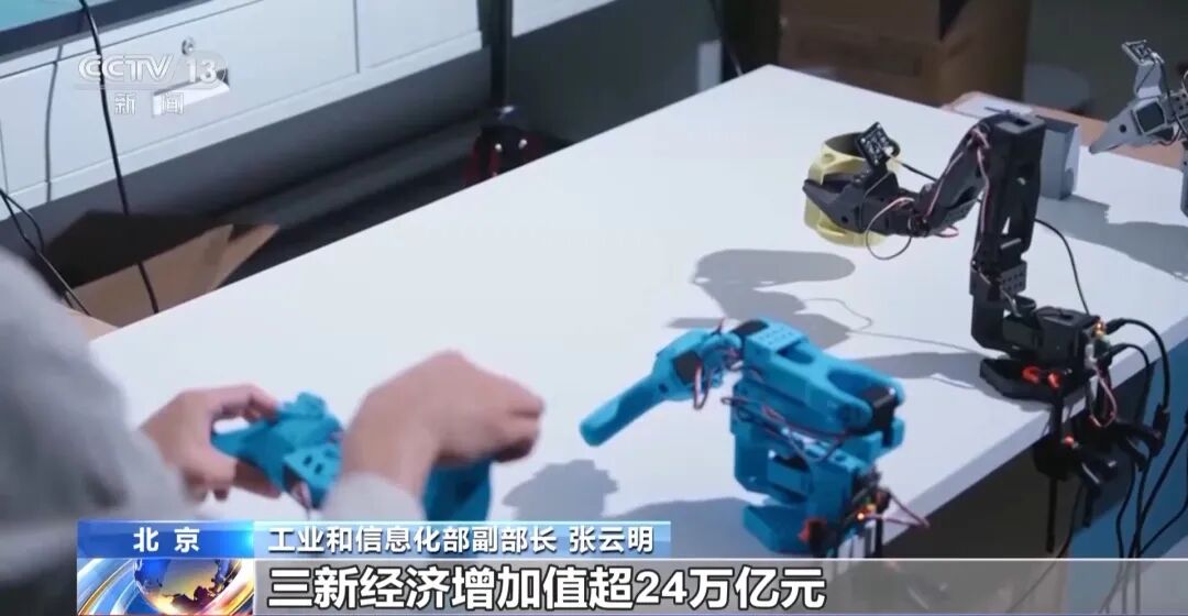工业和信息化部副部长张云明:建成人工智能大模型公共服务平台,有效促进模型数据算法的开放共享。以人工智能加新产业、新业态、新模式为代表的“三新”经济增加值超24万亿元。