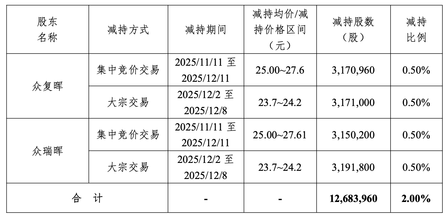 12月12日,怡合达公告,控股股东一致行动人减持计划完成。公告显示,公司于近日收到众复晖、众瑞晖出具的《股东减持计划完成的告知函》,合计减持了1268.4万股。众复晖、众瑞晖为公司控股股东、实际控制人金立国的一致行动人。
