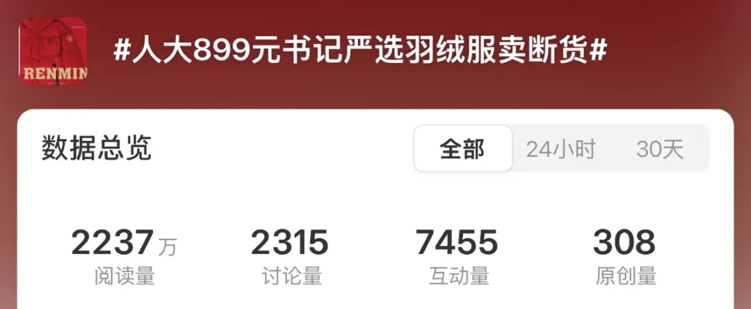 “人大899元书记严选羽绒服卖断货”