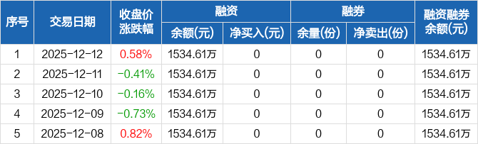 A500指数ETF:融资净买入0元,融资余额1534.61万元(12-12)