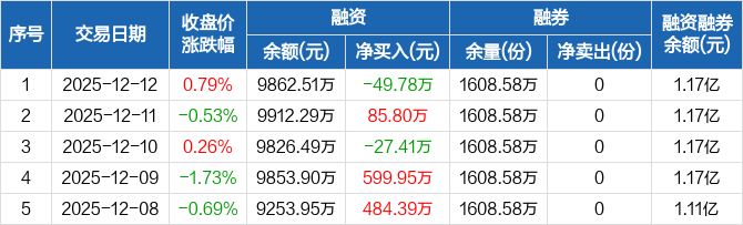 现金流ETF:融资净偿还49.78万元,融资余额9862.51万元(12-12)
