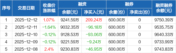 芯片ETF龙头:融资净买入209.24万元,融资余额9241.59万元(12-12)