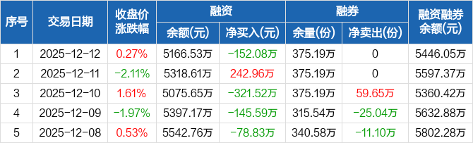 旅游ETF:融资净偿还152.08万元,融资余额5166.53万元(12-12)