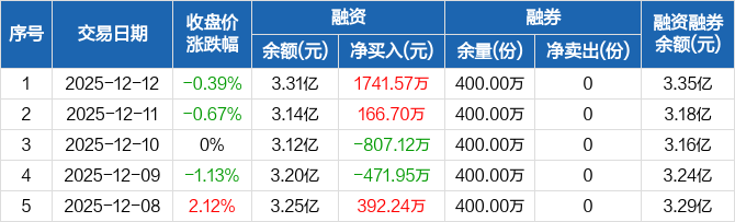 电池ETF:融资净买入1741.57万元,融资余额3.31亿元(12-12)