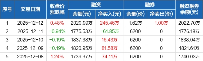 A50ETF:融资净买入245.46万元,融资余额2020.99万元(12-12)