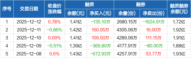 中证A500ETF:融资净偿还135.1万元,融资余额1.41亿元(12-12)