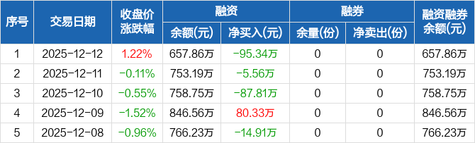 恒生国企ETF:融资余额657.86万元,创近一年新低(12-12)