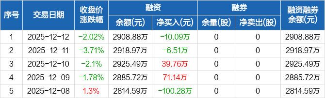 港通医疗:融资净偿还10.09万元,融资余额2908.88万元(12-12)