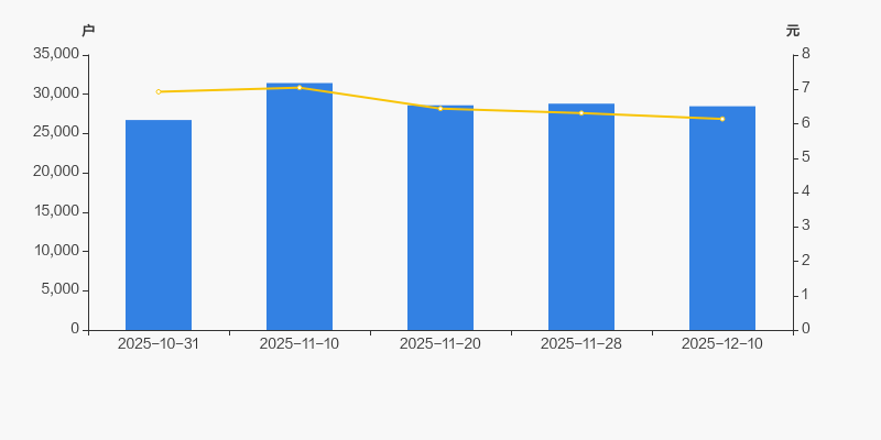 2025年10月31日至今,公司股东户数有所增长,区间涨幅为6.55%。2025年10月31日至2025年12月10日区间股价下降11.40%。