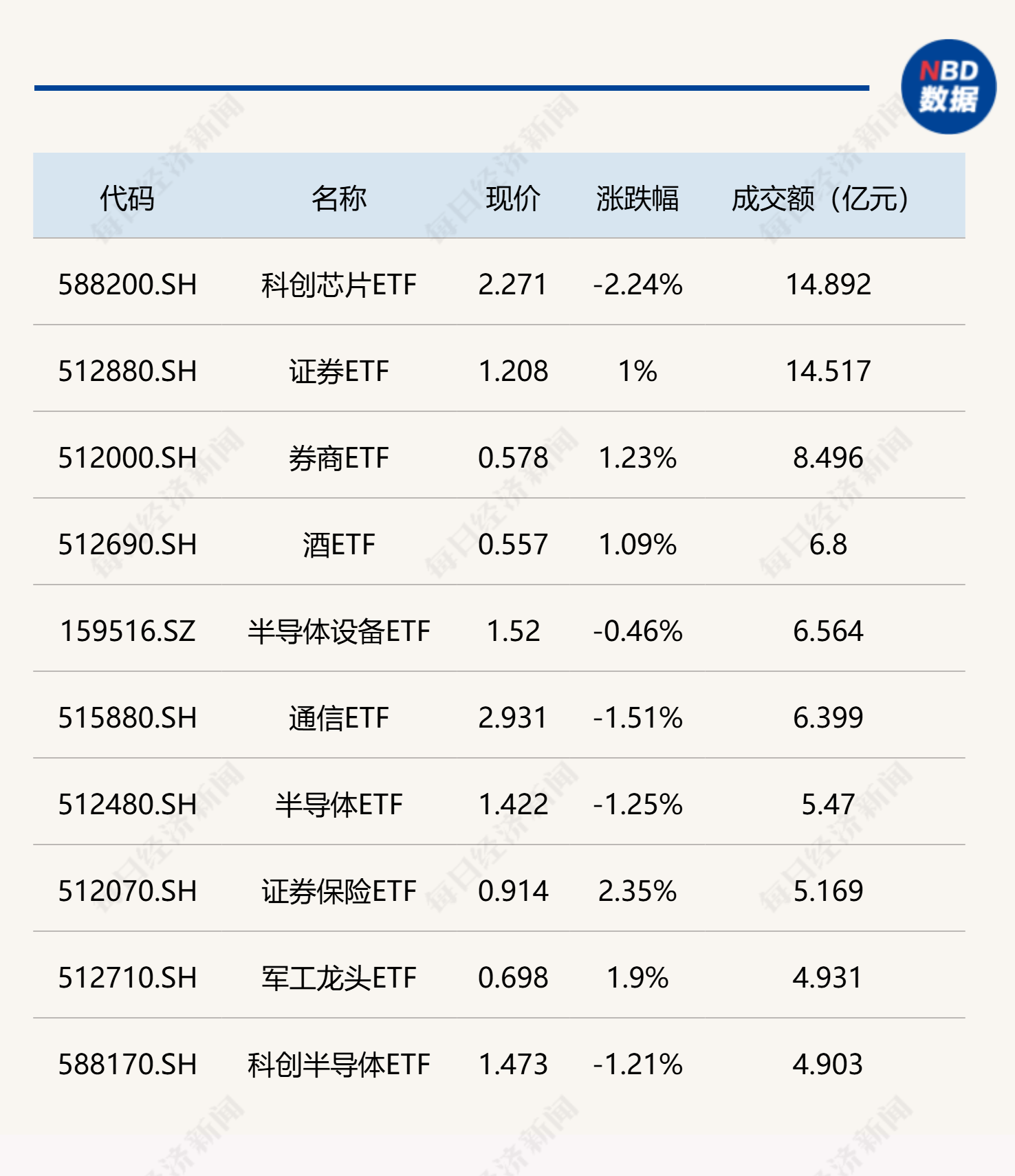行业ETF风向标丨科创芯片ETF、证券ETF半日成交额超14亿元,多只卫星相关ETF早盘涨超2%