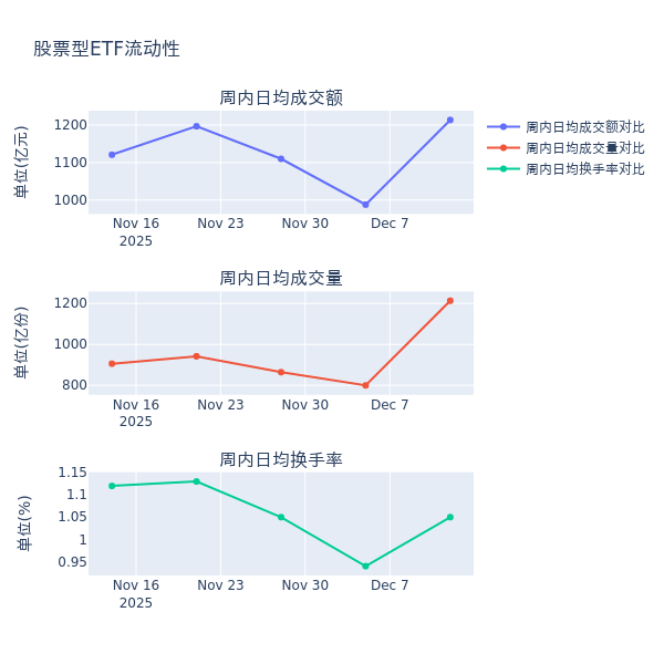 流动性方面,上周股票型ETF市场日均成交额增加22.9%,日均成交量增加51.7%,换手率增加0.11%。