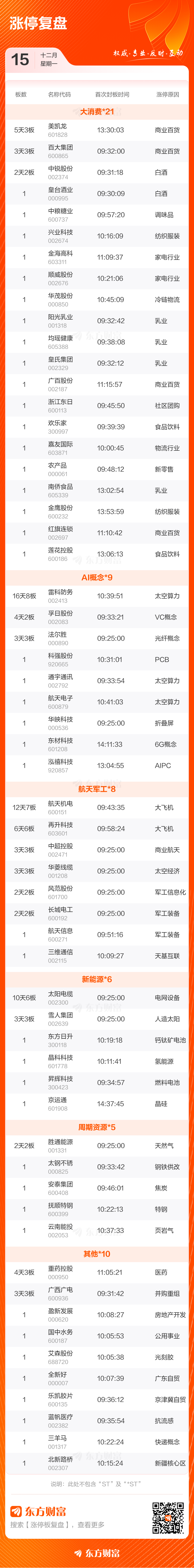 12月15日涨停复盘:65股涨停 美凯龙5天3板