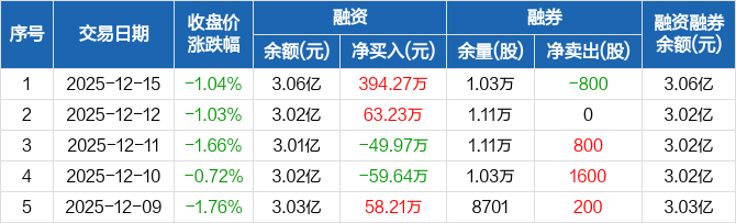 振华新材:融资净买入394.27万元,融资余额3.06亿元(12-15)