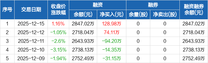 秦川物联:融资净买入128.98万元,融资余额2847.02万元(12-15)