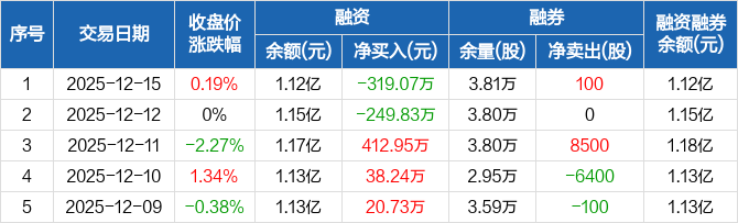 连云港:融资净偿还319.07万元,融资余额1.12亿元(12-15)