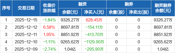 盛邦安全:融资净买入628.45万元,融资余额9326.27万元(12-15)