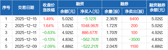 浦东建设:融资净偿还5.12万元,融资余额5.02亿元(12-15)