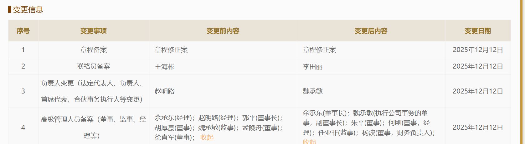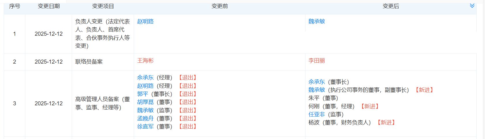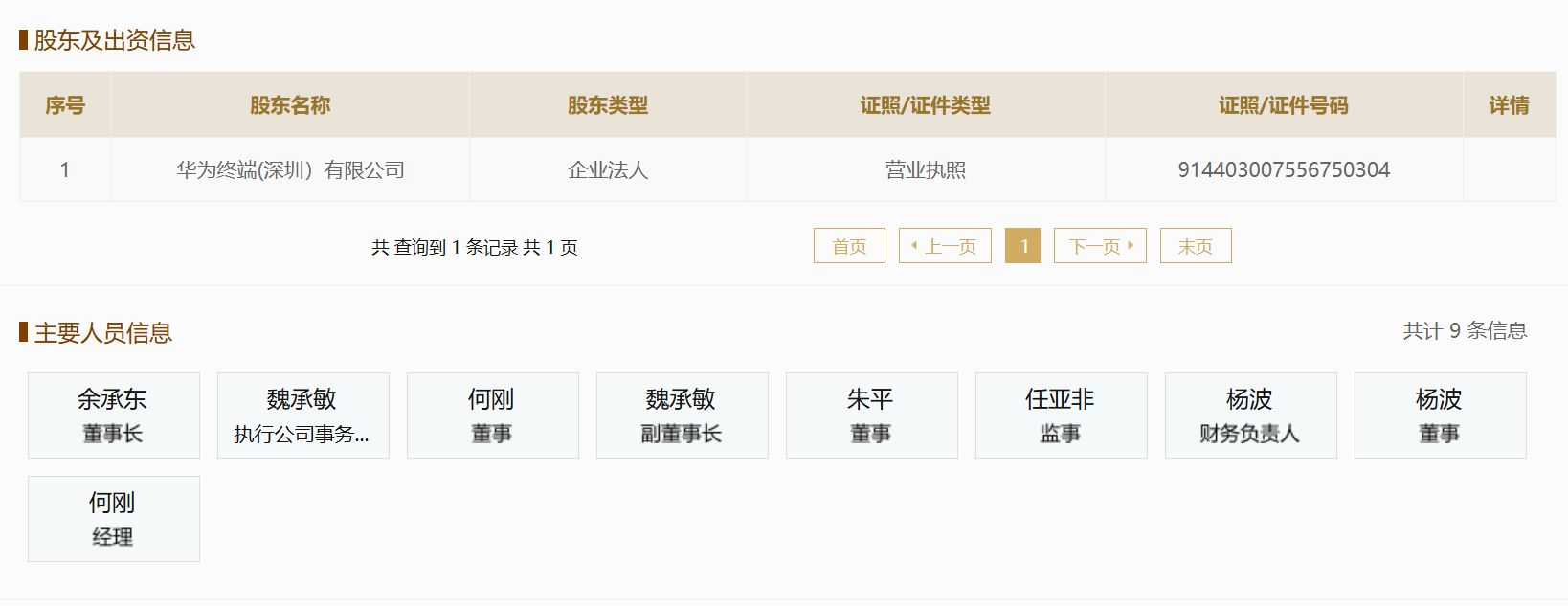 国家企业信用信息公示系统及天眼查工商信息显示,近日,华为终端有限公司发生工商变更,余承东接任董事长,同时,多位高管发生变更。