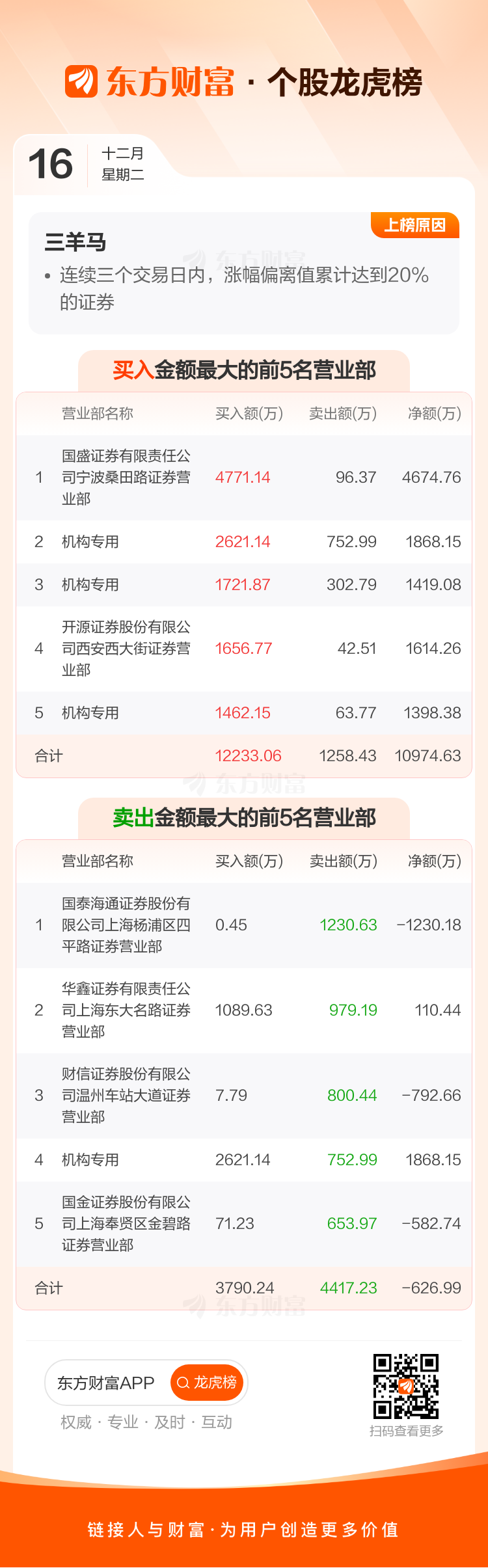 三羊马(001317)龙虎榜数据(12-16)