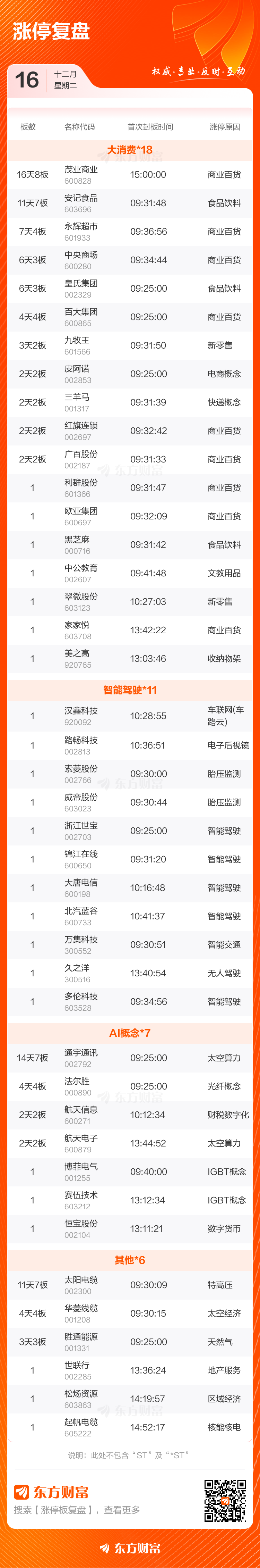 12月16日涨停复盘:46只股涨停 茂业商业16天8板