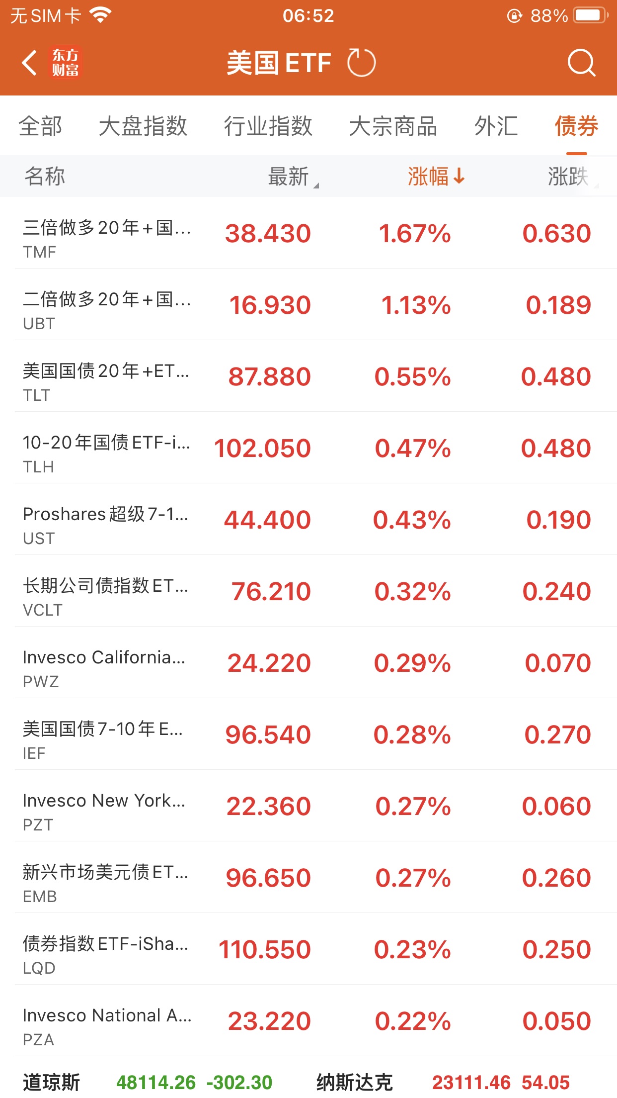 20+年以上美国国债ETF-iShares (TLT.US) 升0.55%,成交额33.12亿美元。